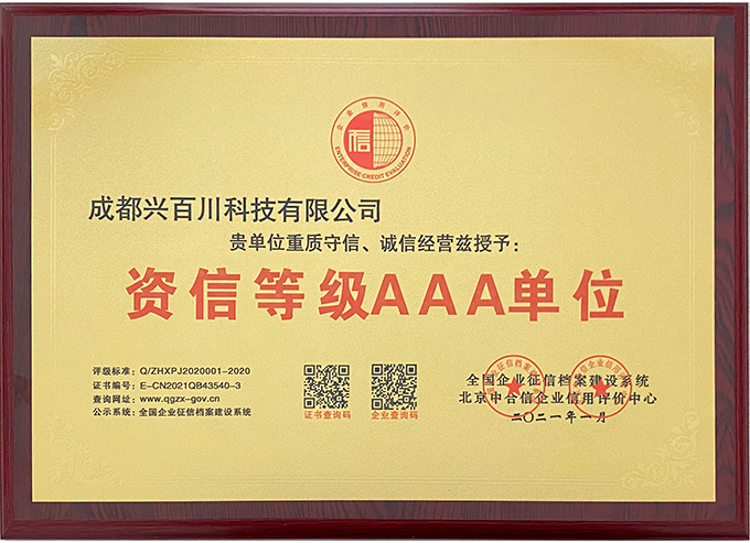 企業(yè)信用等級(jí)證書(shū)-AAA單位