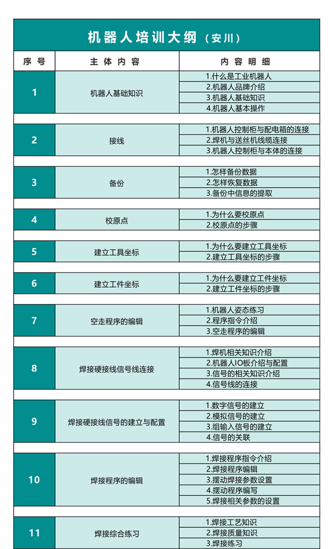 安川工業(yè)機(jī)器人技術(shù)工程師1對(duì)1培訓(xùn)班培訓(xùn)內(nèi)容流程。